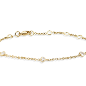 1.550,00€Bracciale in oro giallo 18 kt e 3 diamanti naturali taglio brillante forma a cuore (misura unica)