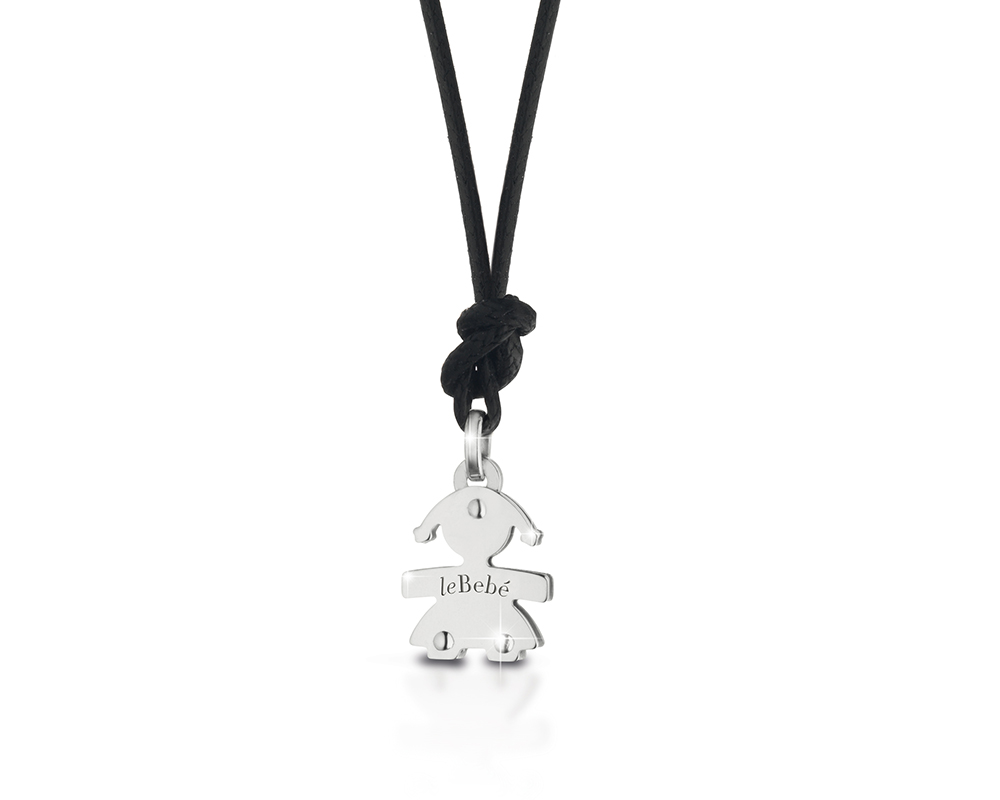 Ciondolo Mini bimba in oro bianco corredato di cordino.
