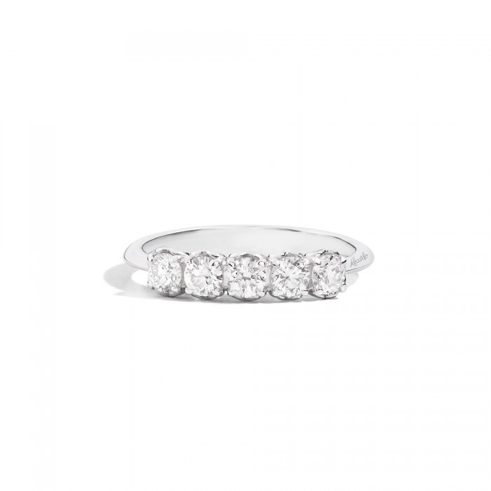 Anniversary, anello 5 pietre in oro bianco e diamanti taglio brillante