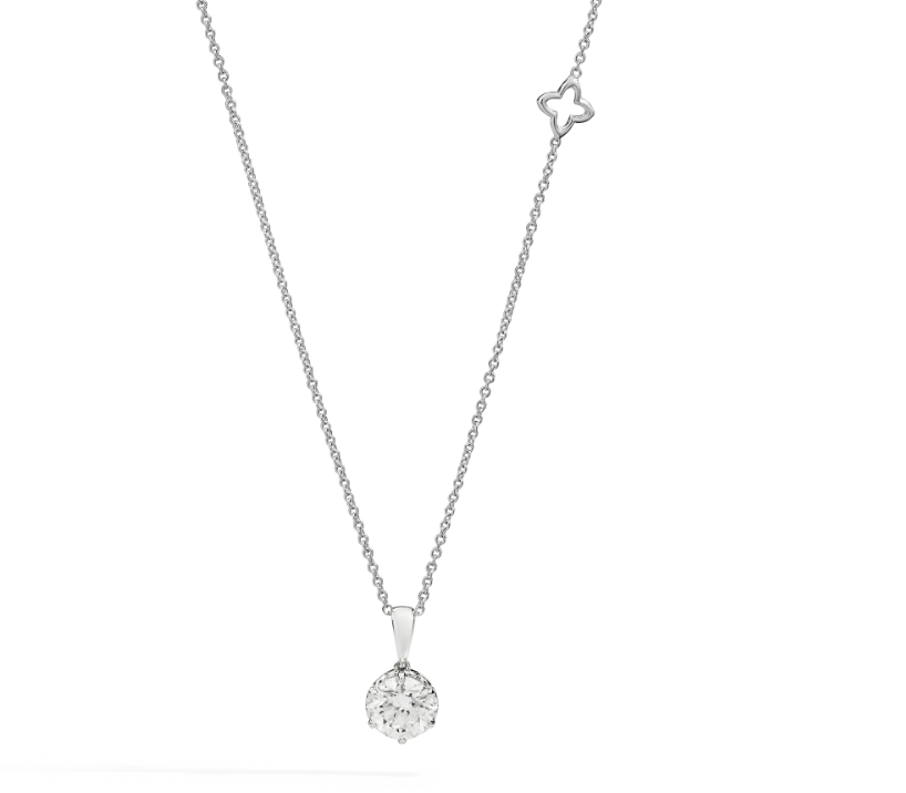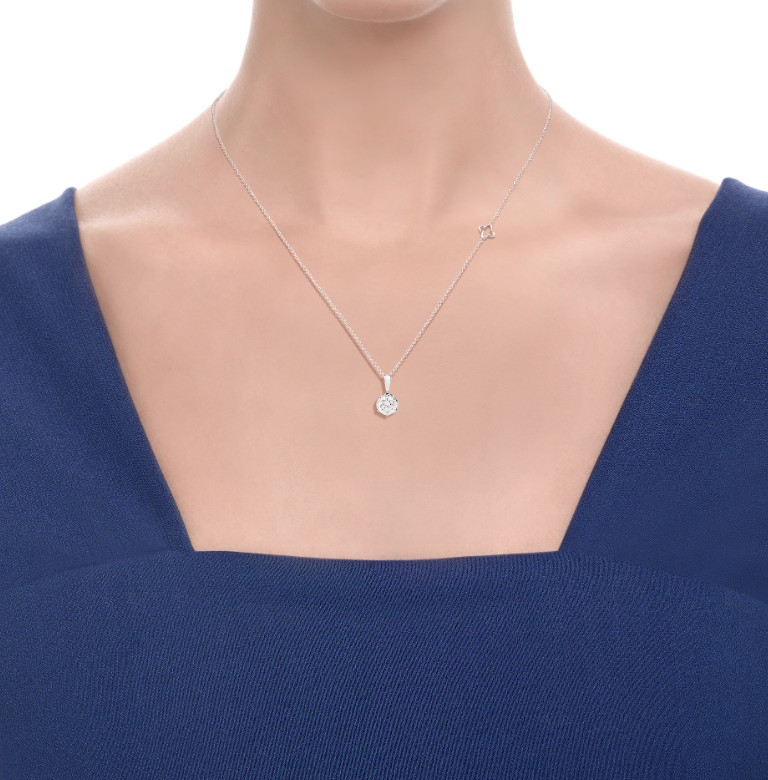 Girocollo punto luce a sei punte con biglierina lucida, oro bianco 18 Kt e diamante taglio brillante (lunghezza 45 cm).